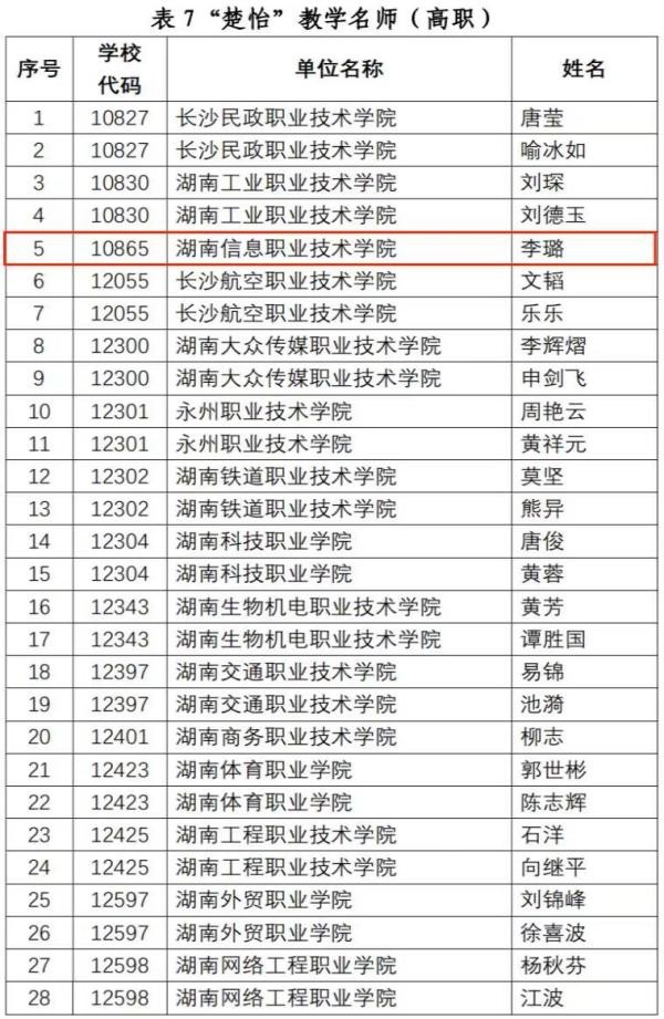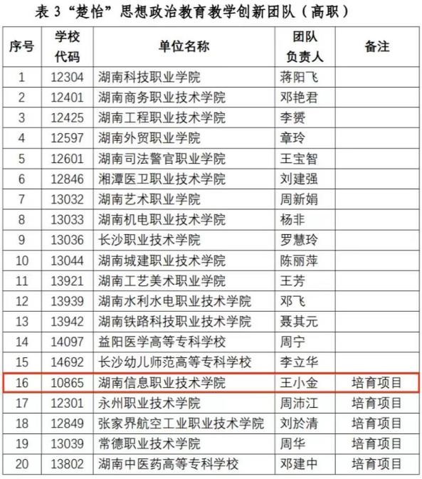 2023年职业教育“楚怡”行动高水平教师队伍建设项目立项公示