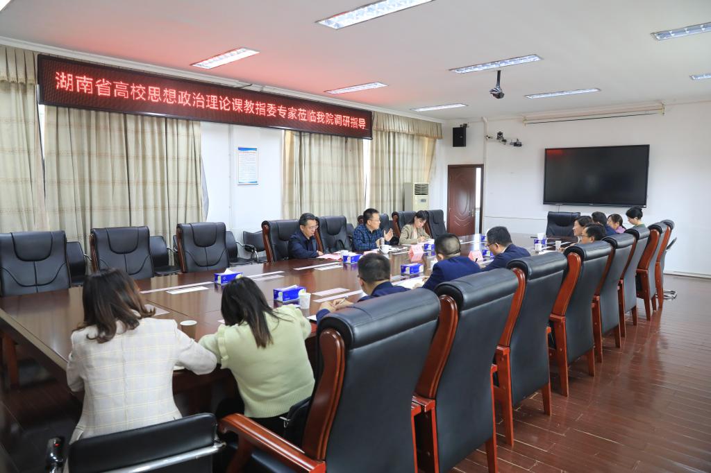 5月11日下午,湖南省高校思想政治理论课教学指导委员会专家南华大学马克思主义学院院长黄秋生教授、衡阳师范学院马克思主义学院院长彭斌教授、衡阳师范学院思政课教师罗丹一行莅临beat365调研指导,学院党委书记贺代贵,党委委员、副院长朱焕桃,党委委员、宣传统战部部长蔡琼及马克思主义学院负责人参加调研。