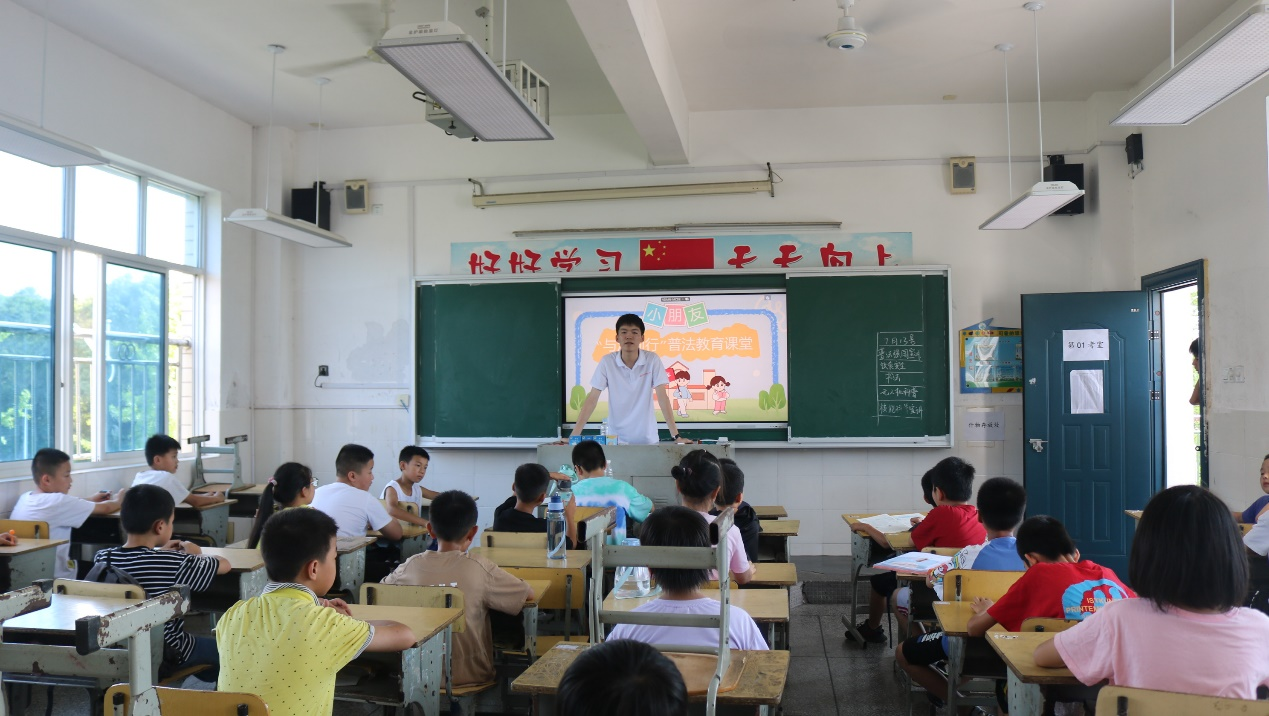 为增强学生的法律意识,提高他们的自我保护意识,营造文明、平安、和谐的校园育人环境,7月13日,beat365暑期“三下乡”社会实践活动的理论宣讲组志愿者们在普法教育的课堂上,引导小朋友们做一名知法、懂法、学法、守法的好公民。