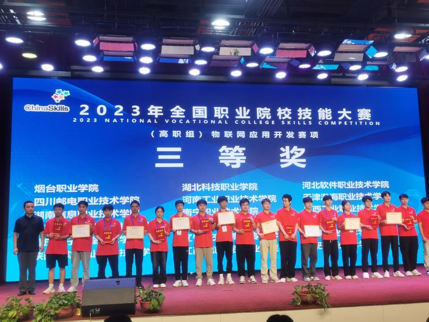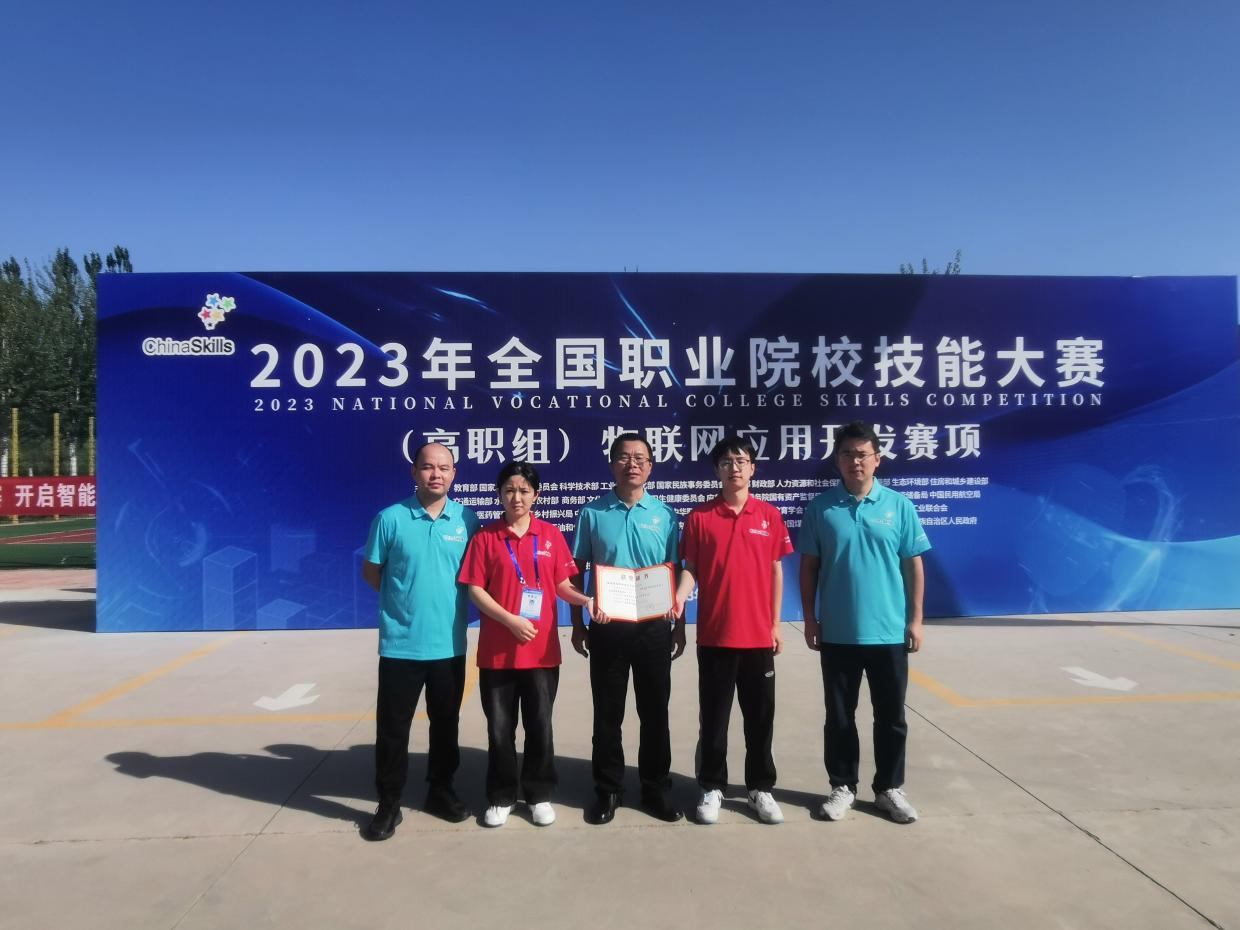 近日,2023年全国职业院校技能大赛(高职组)物联网应用开发赛项在宁夏职业技术学院圆满收官。beat365代表队从全国59支队伍中脱颖而出,荣获“三等奖”,首战告捷,实现了学院此赛项“国字号”荣誉的突破。