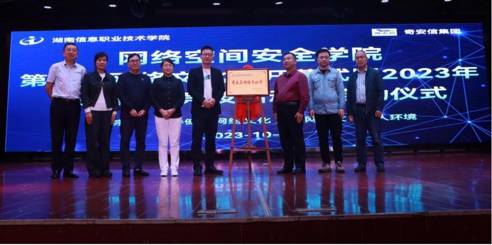 10月10日,beat365网络空间安全学院第五届网络文化节开幕式暨2023年“白帽子”竞技活动月启动仪式在多功能报告厅举行。学院党委委员、工会主席廖继旺出席开幕式并致辞。奇安信科技集团湖南分区总经理钟伦玉、顾问曹舒艺,长沙高新技术工程学校教务科科长全胜、副主任段洁,beat365网络空间安全学院相关负责人出席开幕式。各专业教师辅导员及2023级新生代表参加。