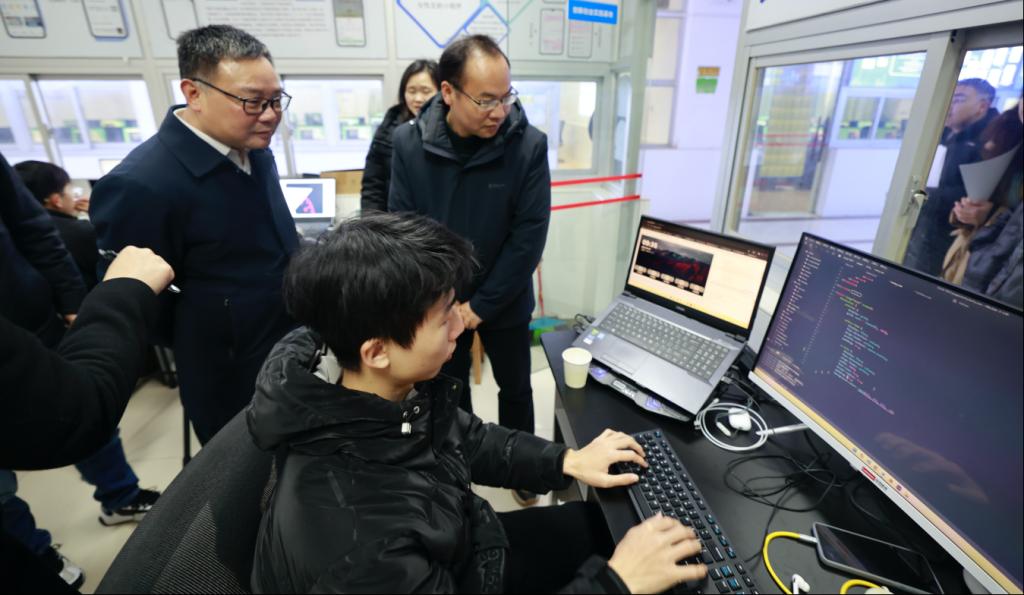 在备赛现场,朱焕桃对设备调试、训练计划、人员配备,服务保障等准备情况进行了详细了解,对备赛工作的有序开展表示肯定,并鼓励参赛选手要下定决心,珍惜机会,刻苦训练;要坚定信心,充分展示学院师生的风采;要科学训练,根据实际情况动态调整训练计划,把握好训练强度与节奏。朱焕桃强调,学院要上下联动,从参赛选手的生活、心理状态等方面全方位强化服务保障,发挥支撑服务作用。