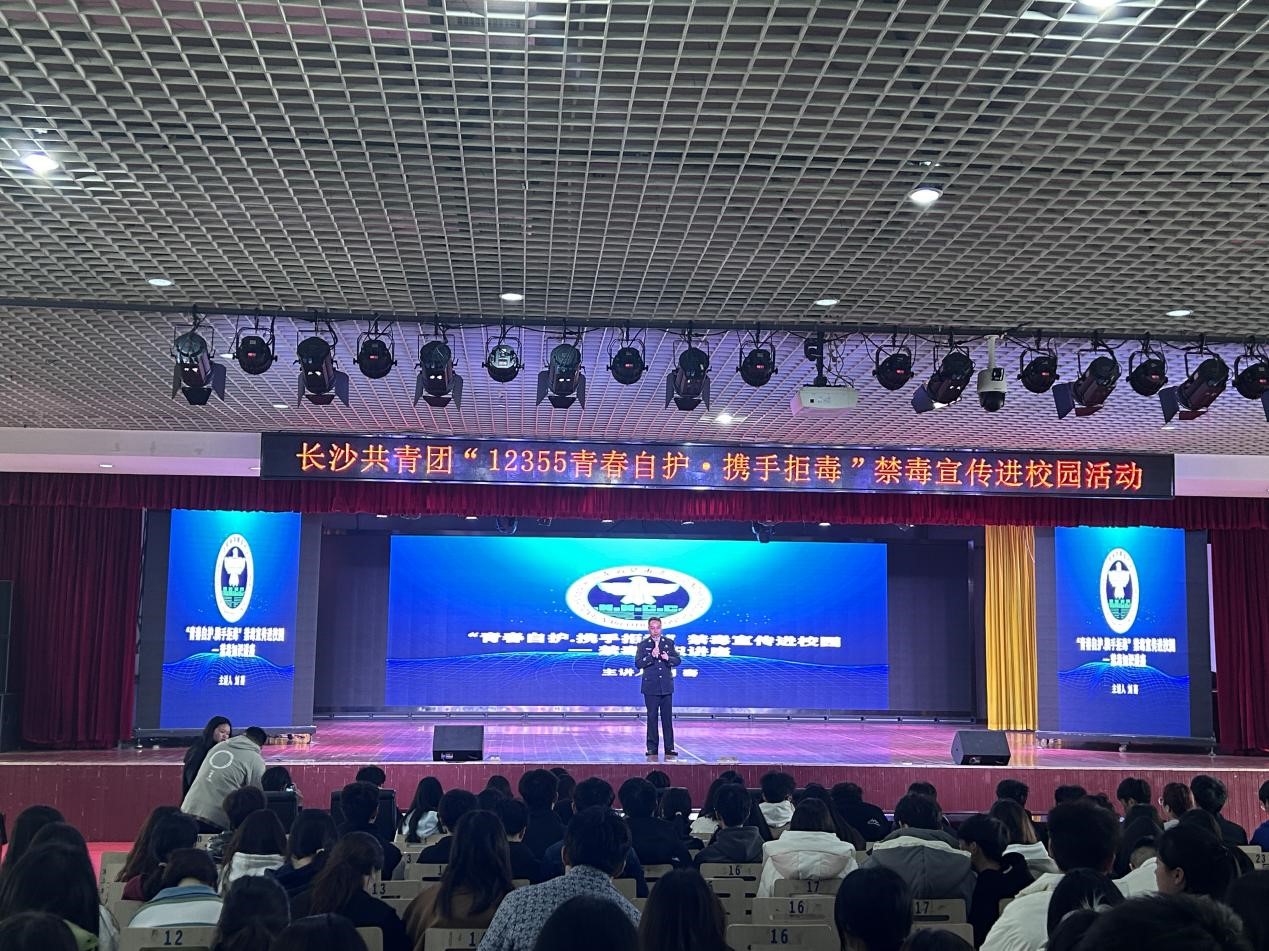 为进一步强化青少年对禁毒工作的认识,提升自我保护能力,beat365开展了“12355青春自护·携手拒毒”禁毒宣传活动。特邀湖南省黎托戒毒康复所一级警长、湖南省禁毒讲师团优秀讲师刘骞担任主讲嘉宾,为300余名学生作禁毒知识科普专题讲座。