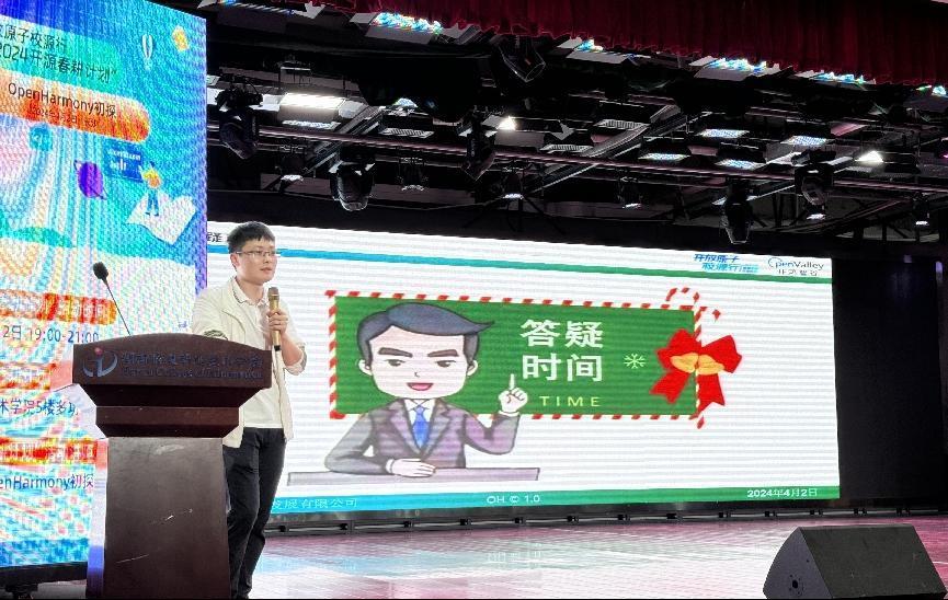 据悉,本次活动由开放原子开源基金会指导发起,涵盖讲座、培训、Workshop等各种形式。在主题讲座环节,专家对信息技术领域开源技术的发展脉络进行介绍,结合实际案例围绕OpenHarmony的由来与设计理念、OpenHarmony生态与未来发展、“开源协作”和“产教融合”人才培养模式进行深入剖析,激发了学生对加入开源技术的浓厚兴趣。