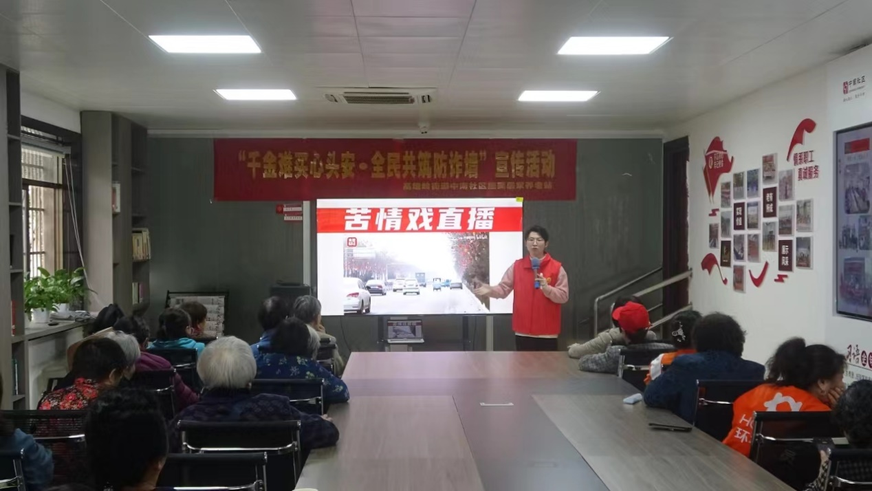 活动现场,志愿者为社区老人介绍手机常用功能和新型网络诈骗的实际案例。在讲解过程中,志愿者为社区老人展示通过免费赠送“评书机”方式向老年人高价推销保健品的案例,并提醒大家警惕小传单、讲座、广播、电视等渠道宣传的特效产品,务必保持头脑清醒,提高防范意识。