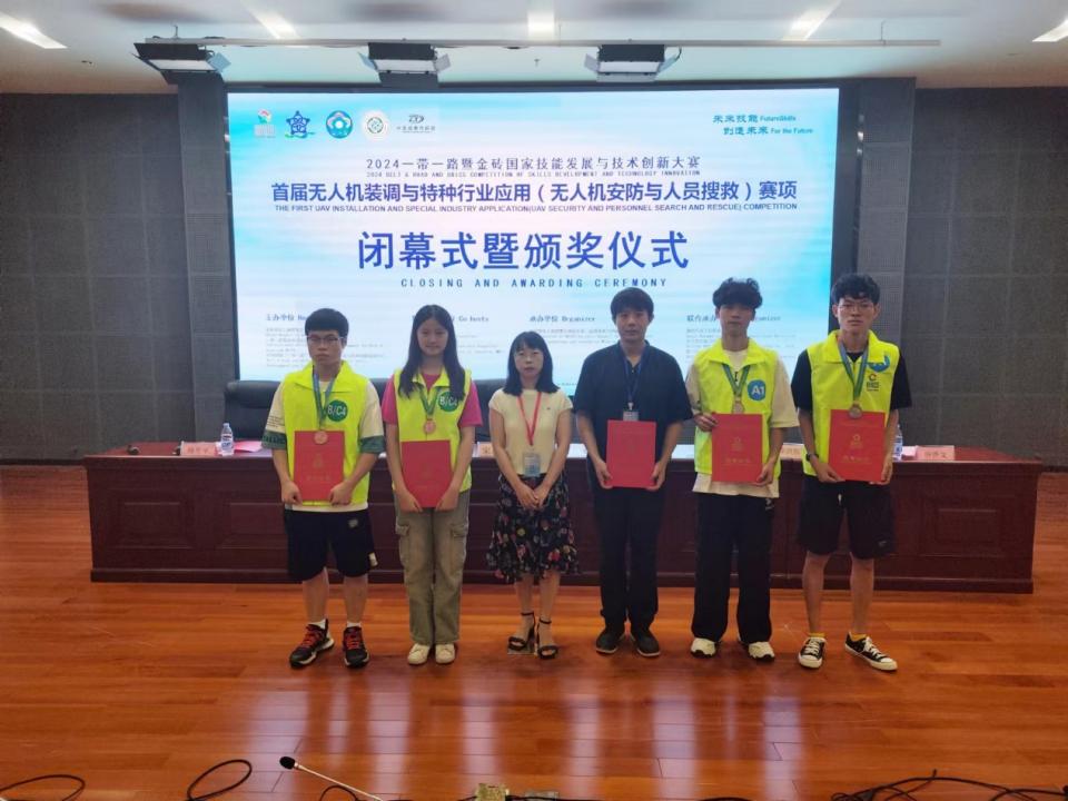 近日,2024“一带一路”暨金砖国家技能发展与技术创新大赛“首届无人机装调与特种行业应用赛项”决赛在湖南株洲圆满落幕。来自全国近50所职业院校的选手同台竞技,经过激烈角逐,beat365代表队凭借扎实的专业能力脱颖而出,斩获全国二等奖1项、三等奖1项,同时,beat365荣获“优秀组织奖”。