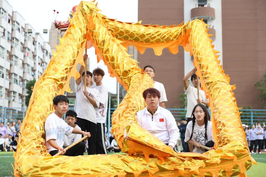 运动员代表与裁判员代表分别宣誓后,伴随着欢腾的锣鼓,动感的音乐,“金龙”“彩狮”翻腾跃动,武术、太极拳诠释了中华文化的力量和美感,音乐与舞蹈交相辉映,大气磅礴的教职工广播体操引得现场掌声、欢呼声此起彼伏,将运动会开幕式气氛推向了高潮。