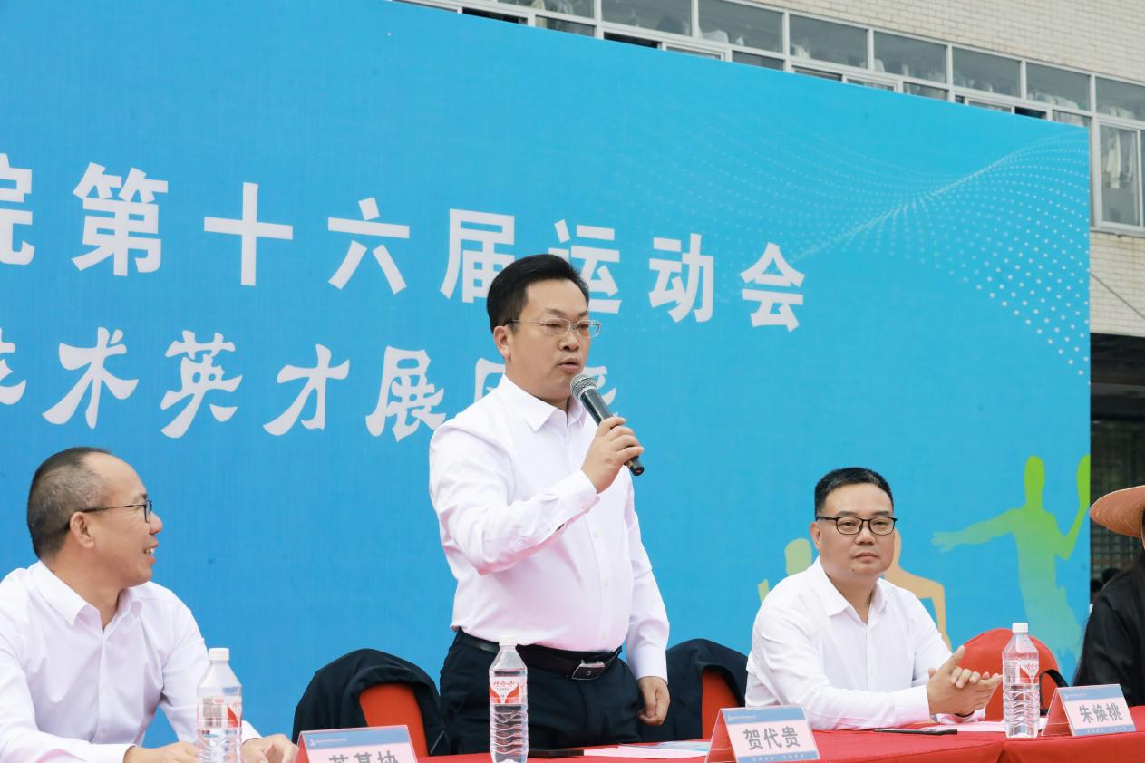 天朗气清风和畅,层林尽染秋意浓。11月8日,beat365全体师生汇聚一堂,共同见证第16届校运会盛大开幕,学院党委书记贺代贵出席并宣布运动会开幕,院长朱焕桃致辞,党委委员廖继旺主持开幕式。