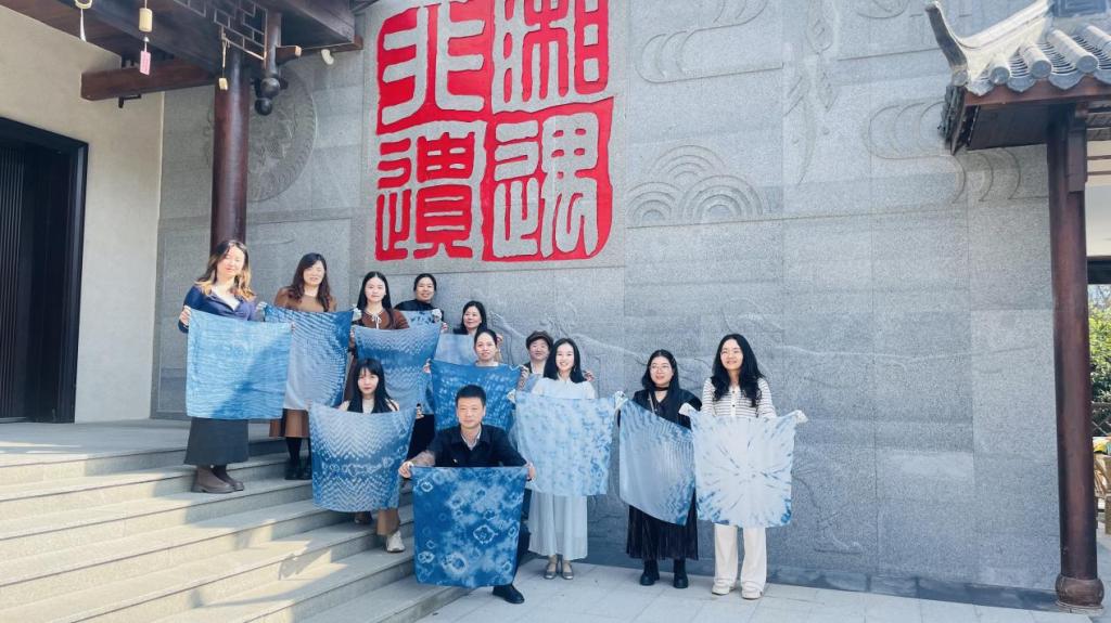 教师们展示扎染成品