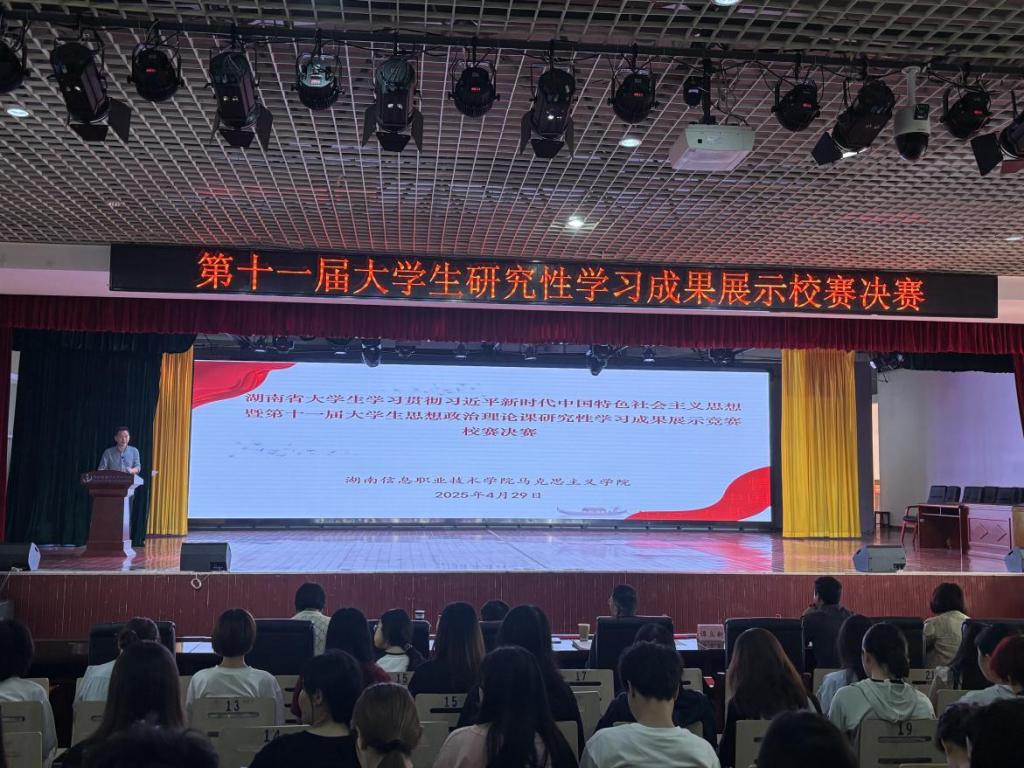 4月29日,beat365第十一届大学生学习贯彻习近平新时代中国特色社会主义思想暨思想政治理论课研究性学习成果展示竞赛决赛在多功能报告厅举行。比赛邀请了三位本科院校教授担任评审专家,学院党委委员、副院长谭立新出席并致辞,马克思主义学院教师代表和200余名学生参加。
