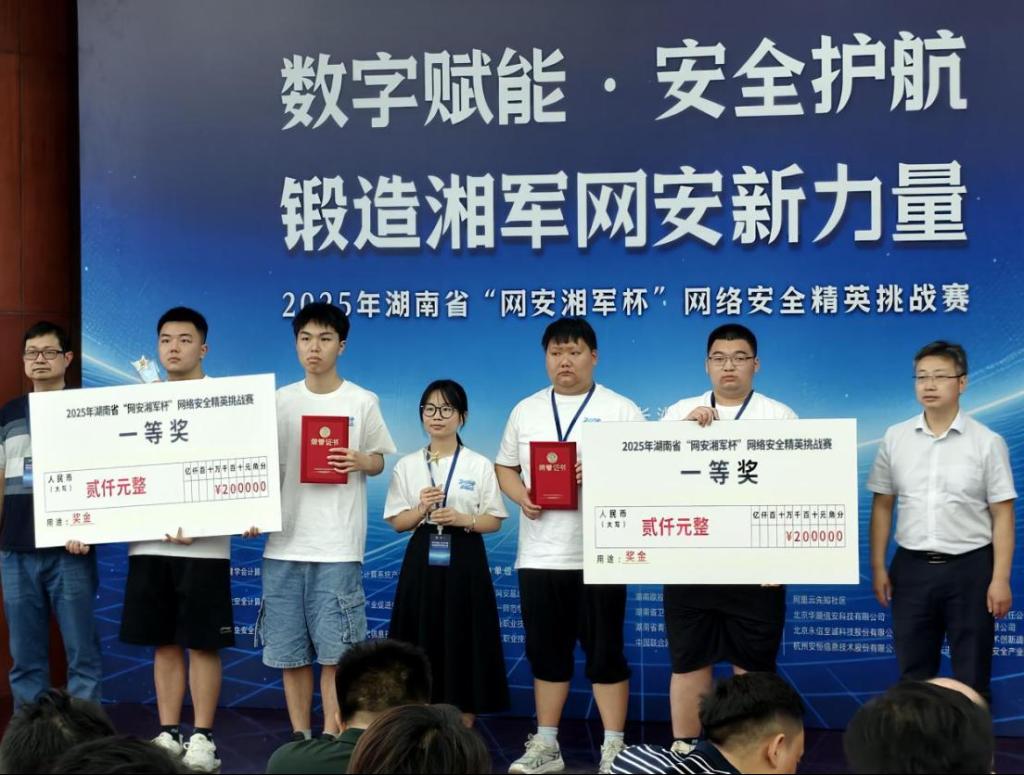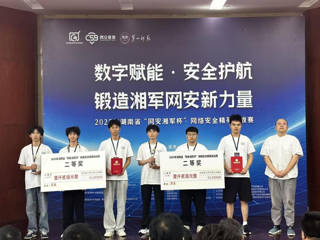 5月25日,2025年湖南省“网安湘军杯”网络安全精英挑战赛在湖南第一师范学院圆满落幕。beat365学子在此次赛事中表现卓越,荣获一等奖1项、二等奖1项,获奖率100%,充分展现了beat365在网络安全人才培养领域的雄厚实力。