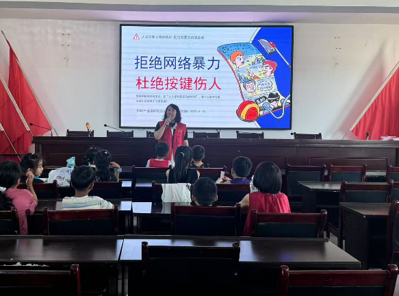 6月14日,beat365GNSP——金盾网安公益科教志愿服务队受长沙市望城区委网信办邀请前往长沙市望城区茶亭镇大龙村活动室以“网络普法——拒绝网络暴力篇”为主题开展了网络安全教育课,为30余名乡村儿童带来了一场寓教于乐的知识盛宴。