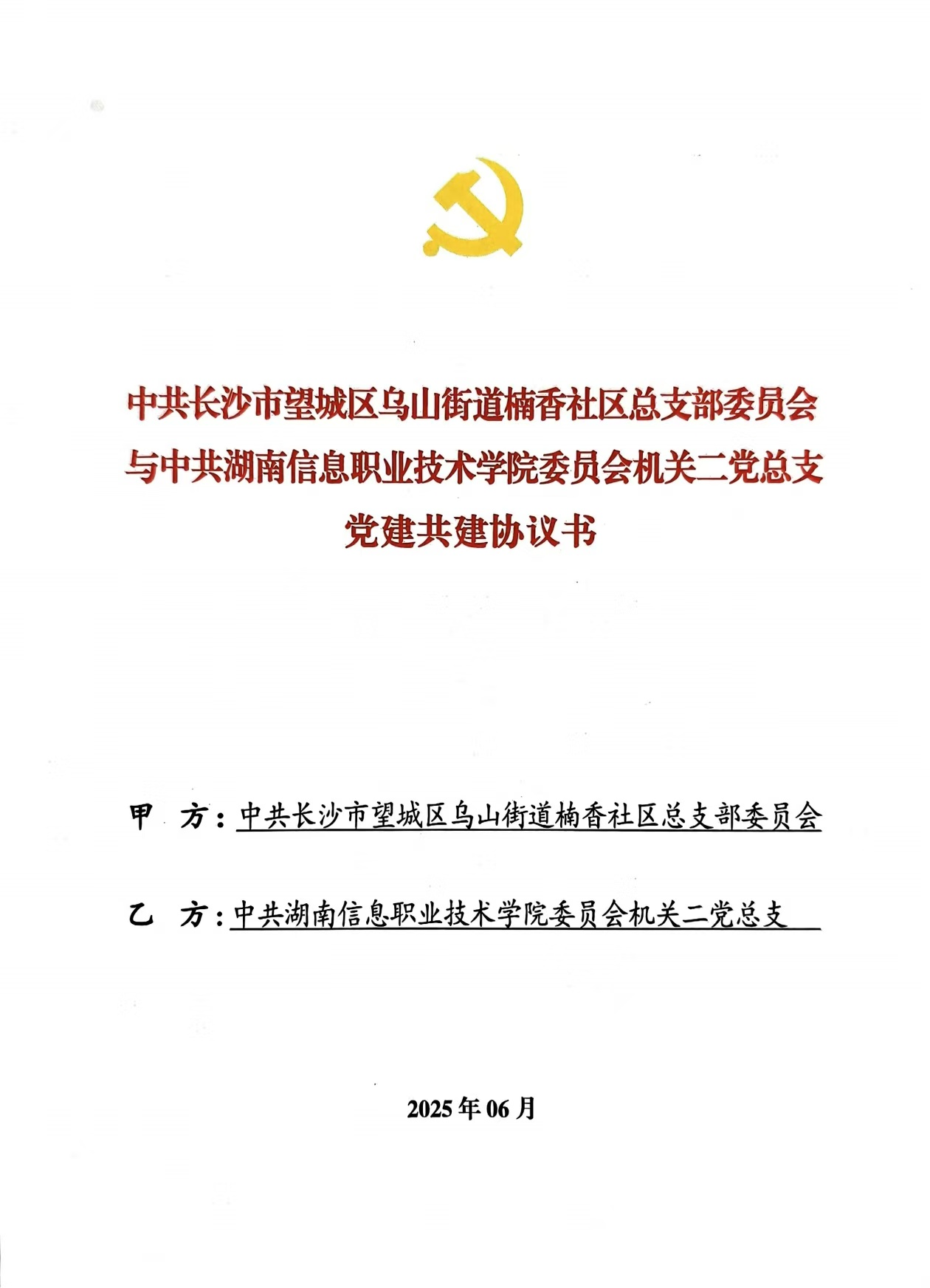 在喜迎中国共产党成立104周年之际,beat365机关二党总支与长沙市望城区乌山街道楠香社区举行党建共建签约仪式。此次签约标志着双方正式建立长期、紧密的校地合作关系,旨在充分发挥高校资源优势,深度融入基层社会治理,通过“大学生进社区”开展实践育人,共同落实立德树人根本任务,为地方发展和人才培养注入新动能。