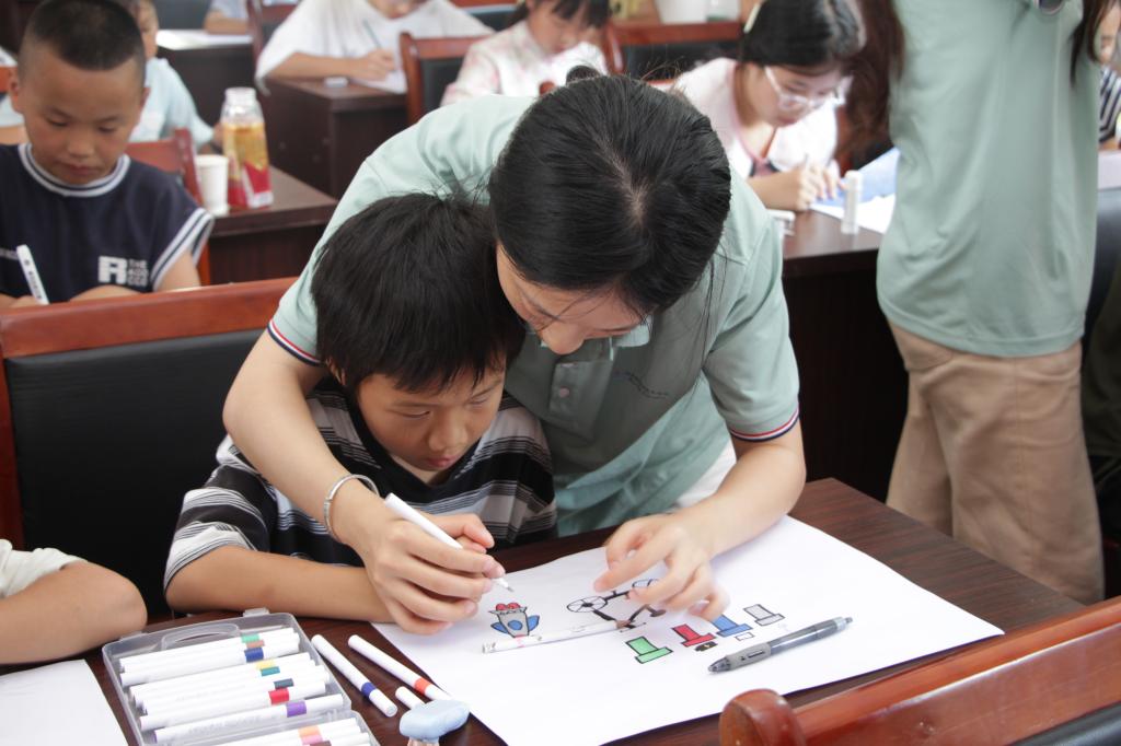 课堂上,孩子们用树叶拼贴成生态大树,将茶叶渣嵌入废纸盒制成植物花盆,废旧瓶盖经彩绘后组成创意挂饰;用稚嫩小手勾勒出一幅幅乡村可持续发展的未来图景,现场共完成40余件兼具艺术性与教育意义的作品。