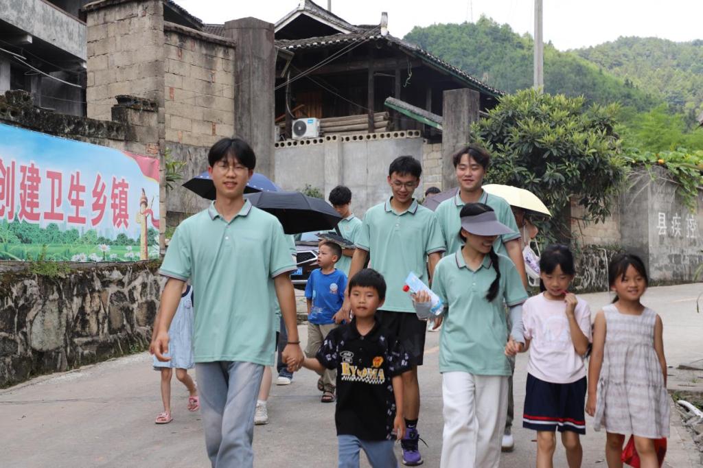 针对高椅古村周边溪流、水塘分布情况,实践团设立“爱心护学岗”护送学生安全回家。酷暑夏日,实践团成员在上下学有水域路段,引导护送村中少年儿童安全通行。这一抹流动的“守护绿”,成为古村溪畔最安心的风景线,有效预防了路途中的溺水风险。