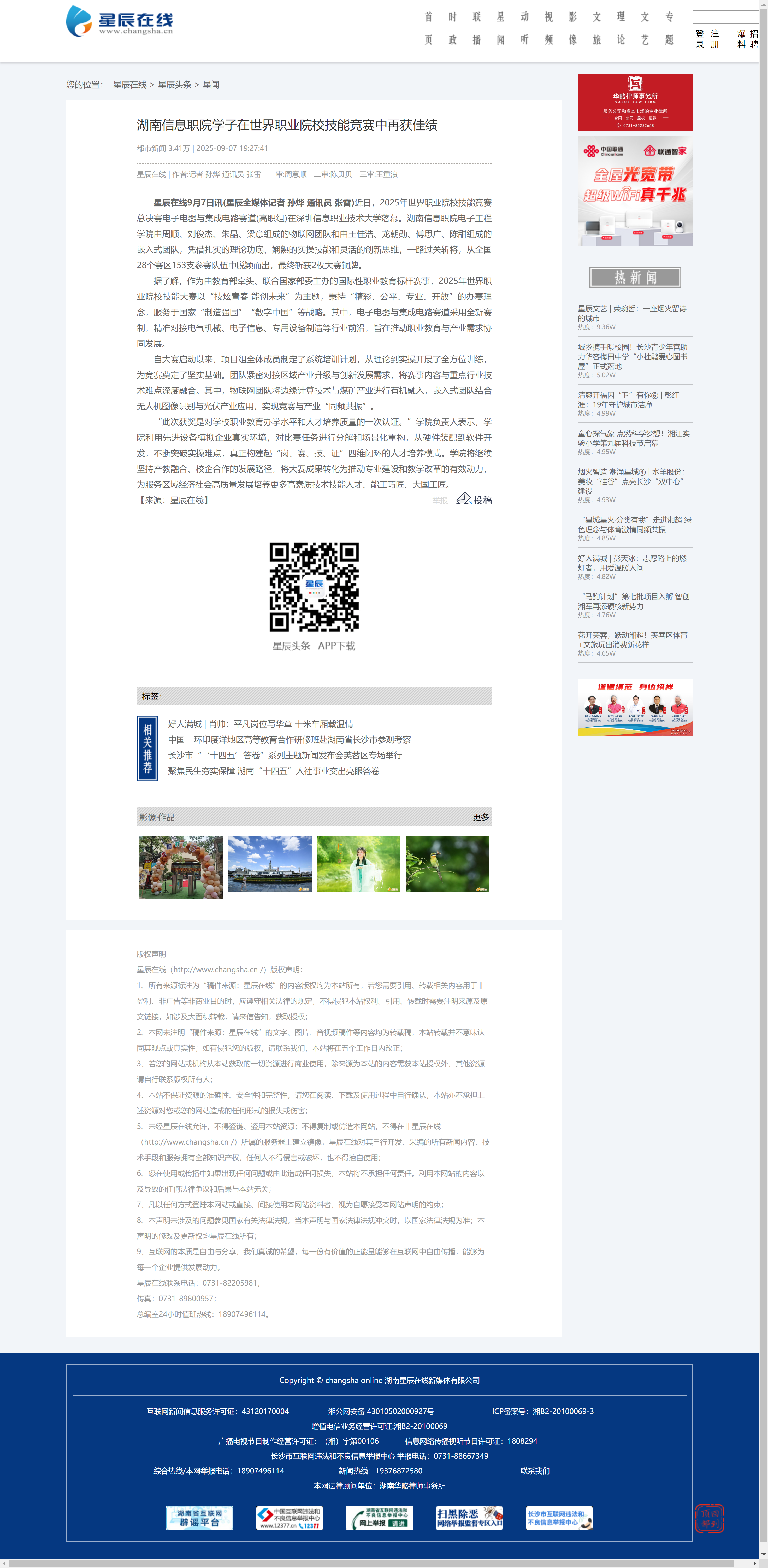 9月7日,星辰在线发布《湖南信息职院学子在世界职业院校技能竞赛中再获佳绩》
