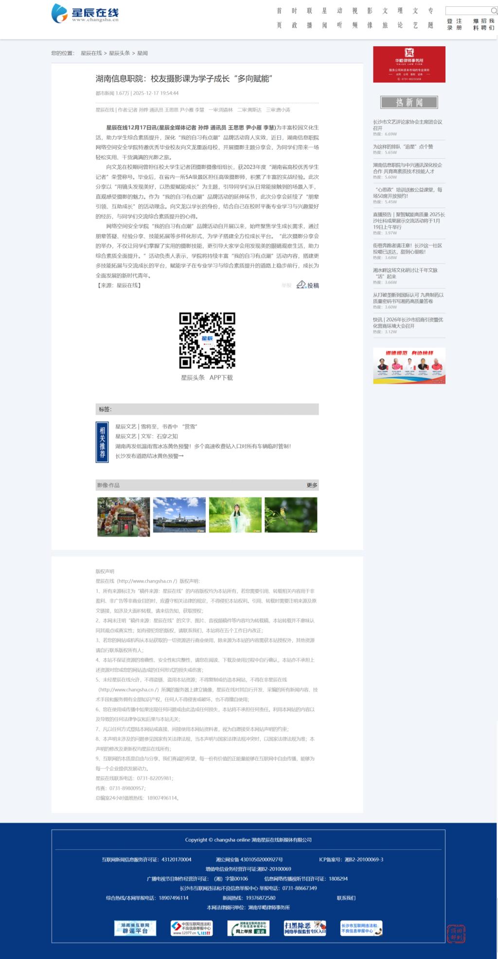 12月17日,星辰在线发布《湖南信息职院:校友摄影课为学子成长“多向赋能”》