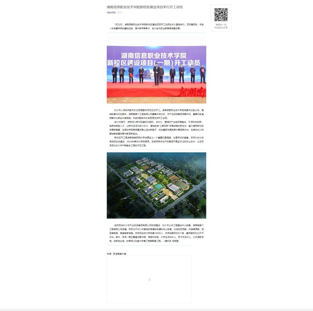1月25日,“湘微高职”微信公众号发布《beat365英国官方网站新校区建设项目举行开工动员》。