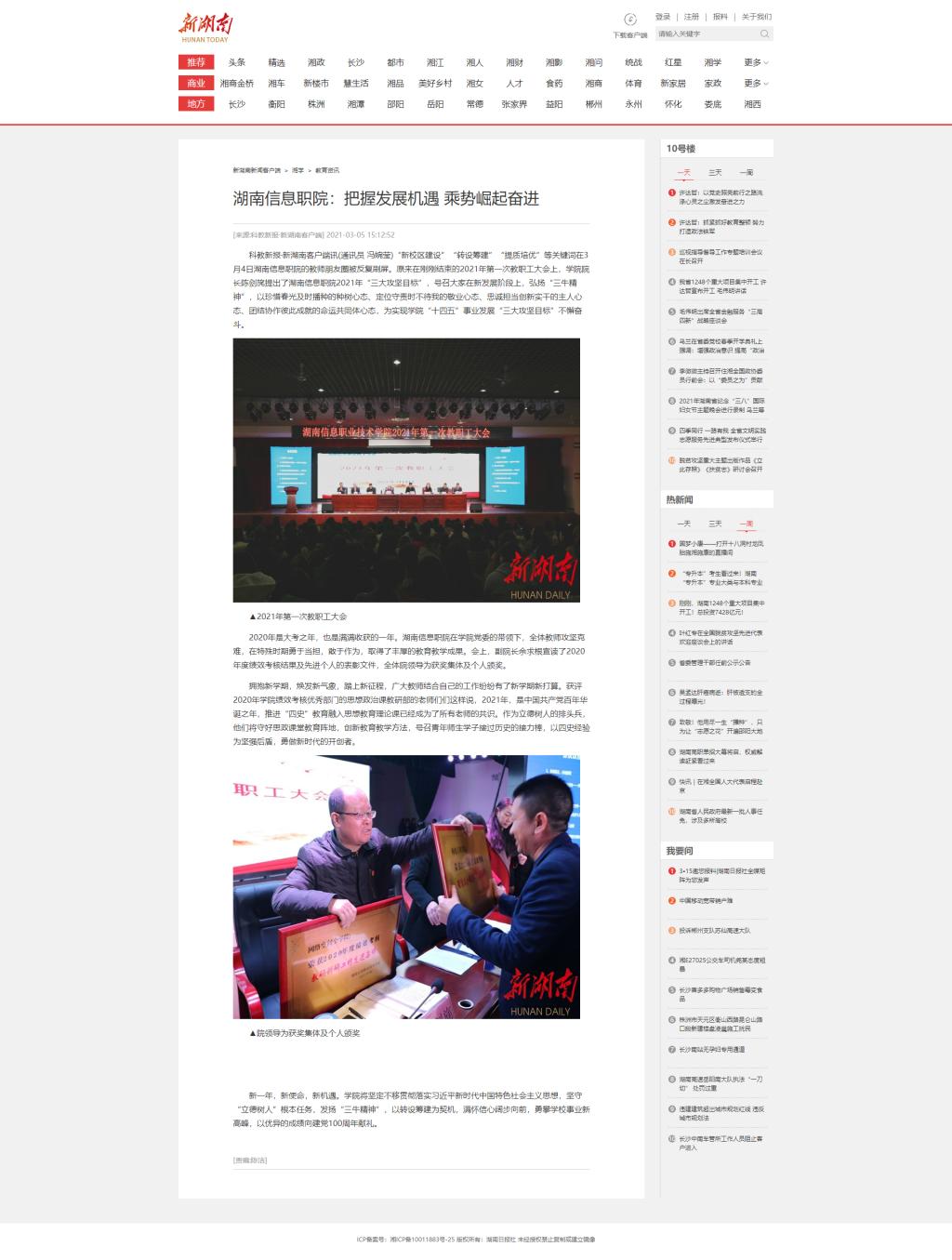 3月5日,新湖南发布《湖南信息职院:把握发展机遇 乘势崛起奋进》。