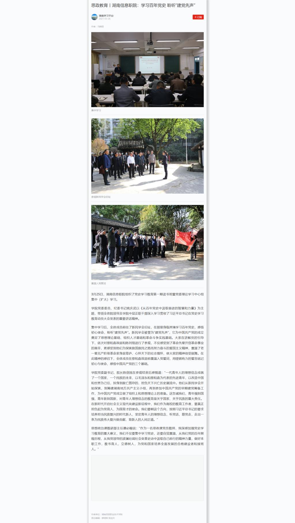 学习强国:思政教育丨湖南信息职院:学习百年党史 聆听“建党先声”