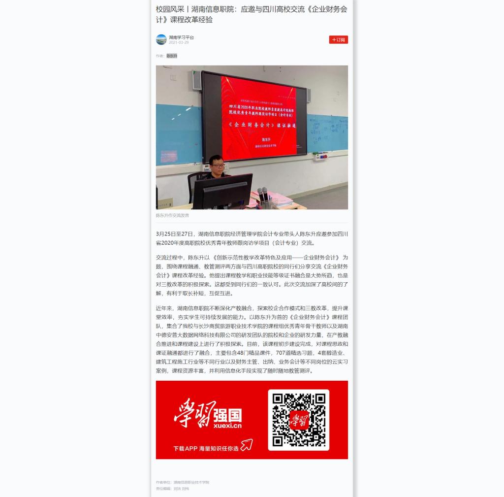 学习强国:校园风采丨湖南信息职院:应邀与四川高校交流《企业财务会计》课程改革经验