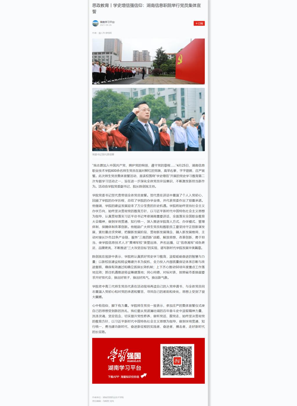 学习强国:思政教育丨学史增信强信仰:湖南信息职院举行党员集体宣誓