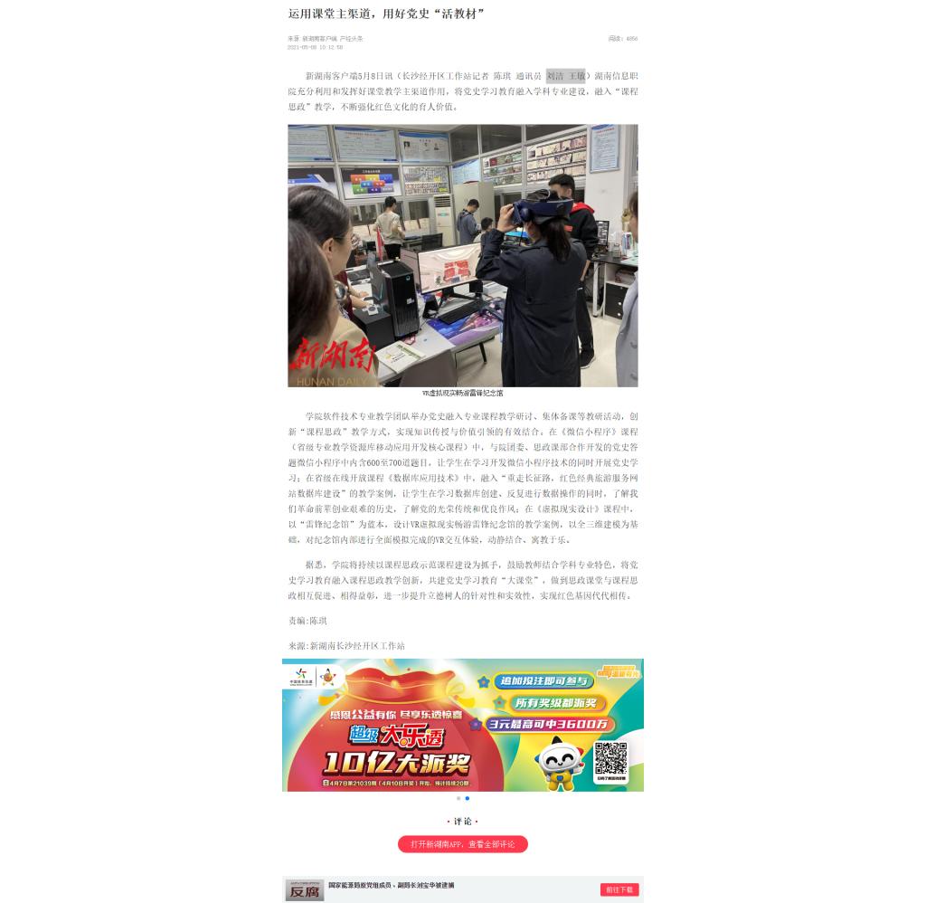 5月8日,新湖南发布《运用课堂主渠道,用好党史“活教材”》。