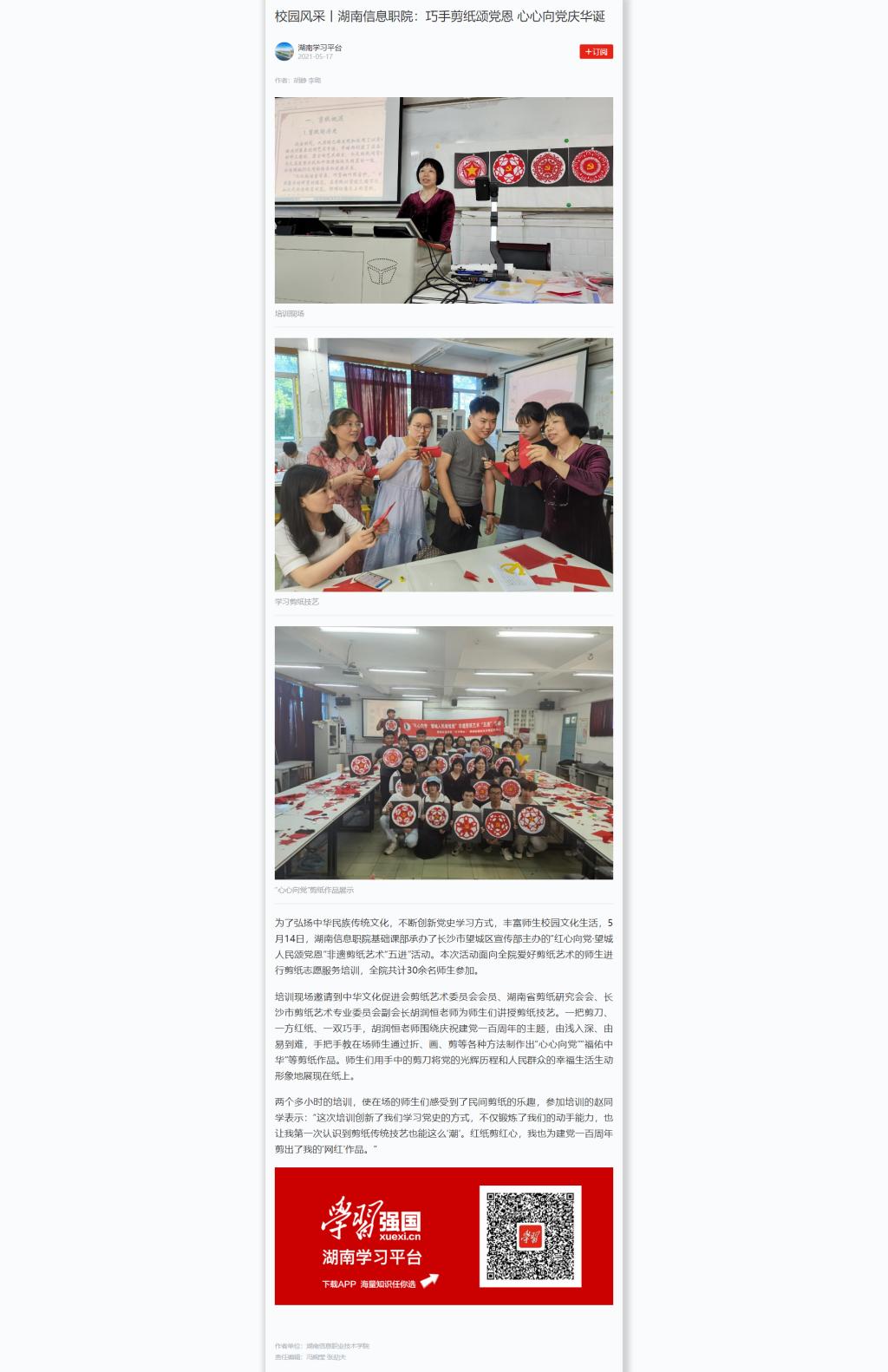 学习强国:校园风采丨湖南信息职院:巧手剪纸颂党恩 心心向党庆华诞