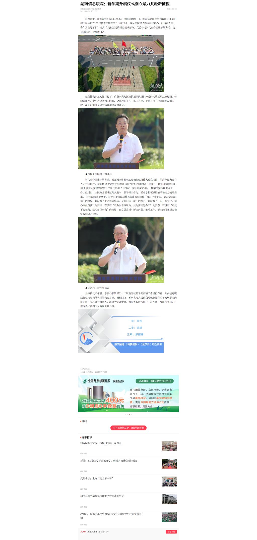 9月2日,新湖南发布《湖南信息职院:新学期升旗仪式凝心聚力共赴新征程》。