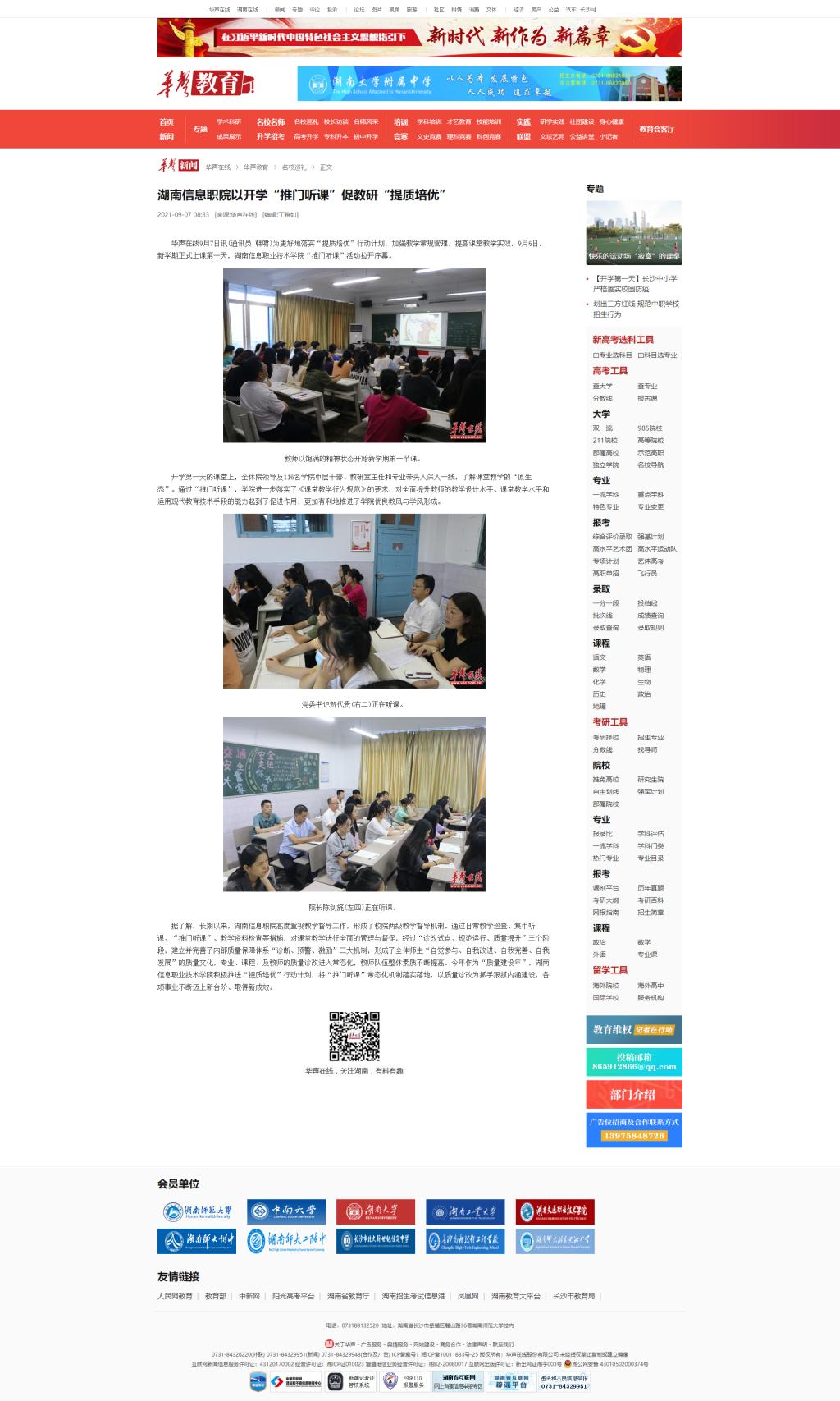 9月7日,华声在线发布《湖南信息职院以开学“推门听课”促教研“提质培优”》。