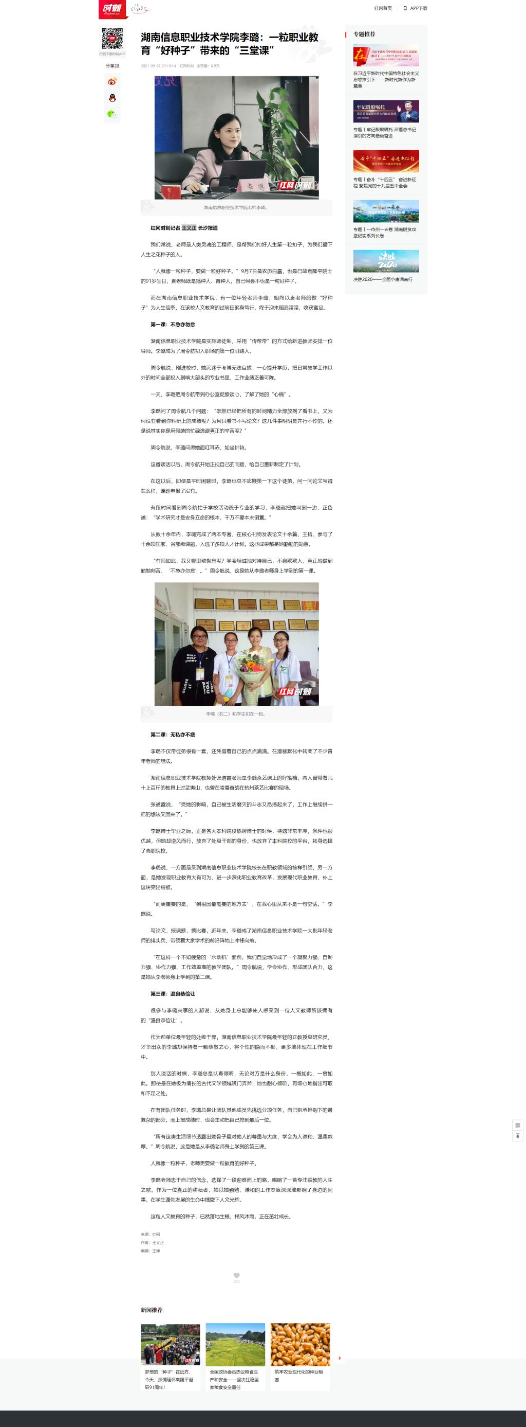 9月7日,红网发布《beat365英国官方网站李璐:一粒职业教育“好种子”带来的“三堂课”》。