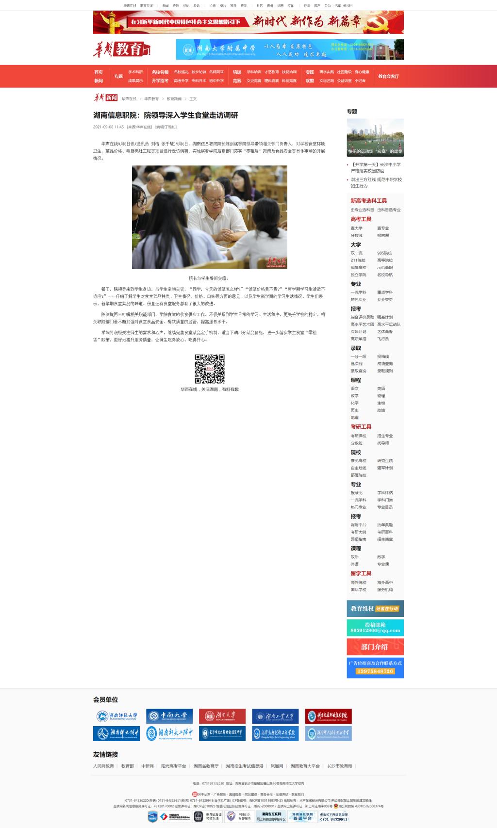 9月8日,华声在线发布《湖南信息职院:院领导深入学生食堂走访调研》
