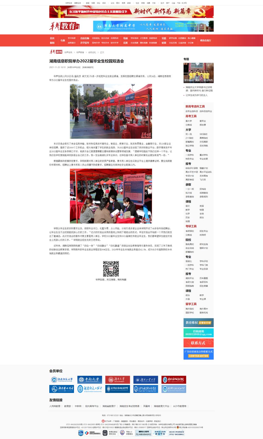 11月25日,华声在线发布《湖南信息职院举办2022届毕业生校园双选会》。