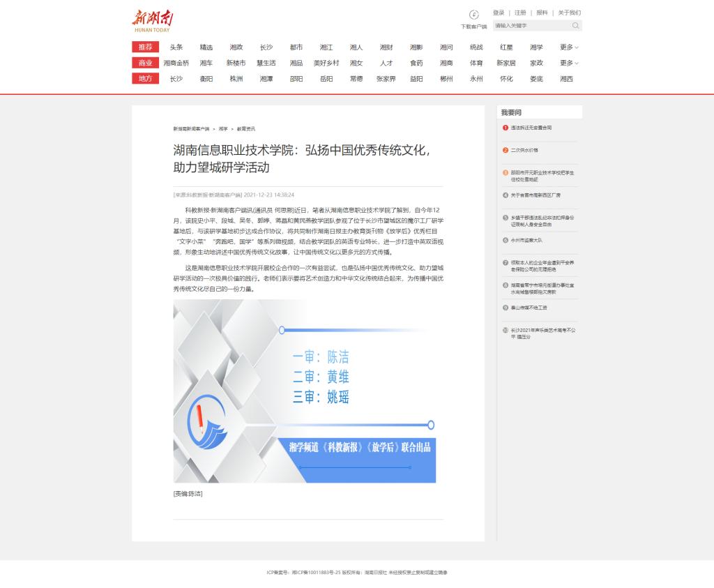 12月23日,新湖南发布《beat365英国官方网站:弘扬中国优秀传统文化,助力望城研学活动》。