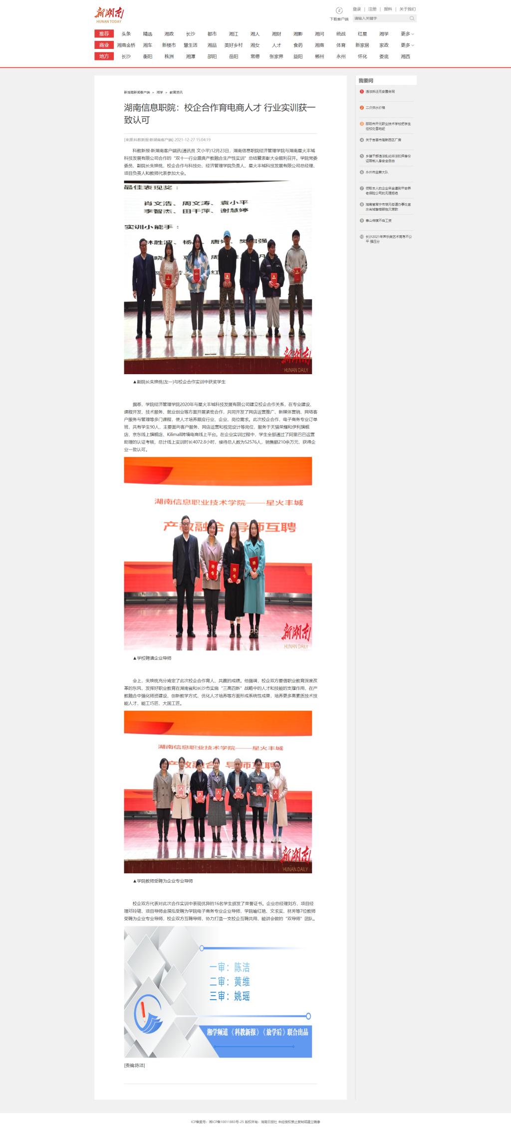 12月27日,新湖南发布《beat365英国官方网站:校企合作育电商人才 行业实训获一致认可》。