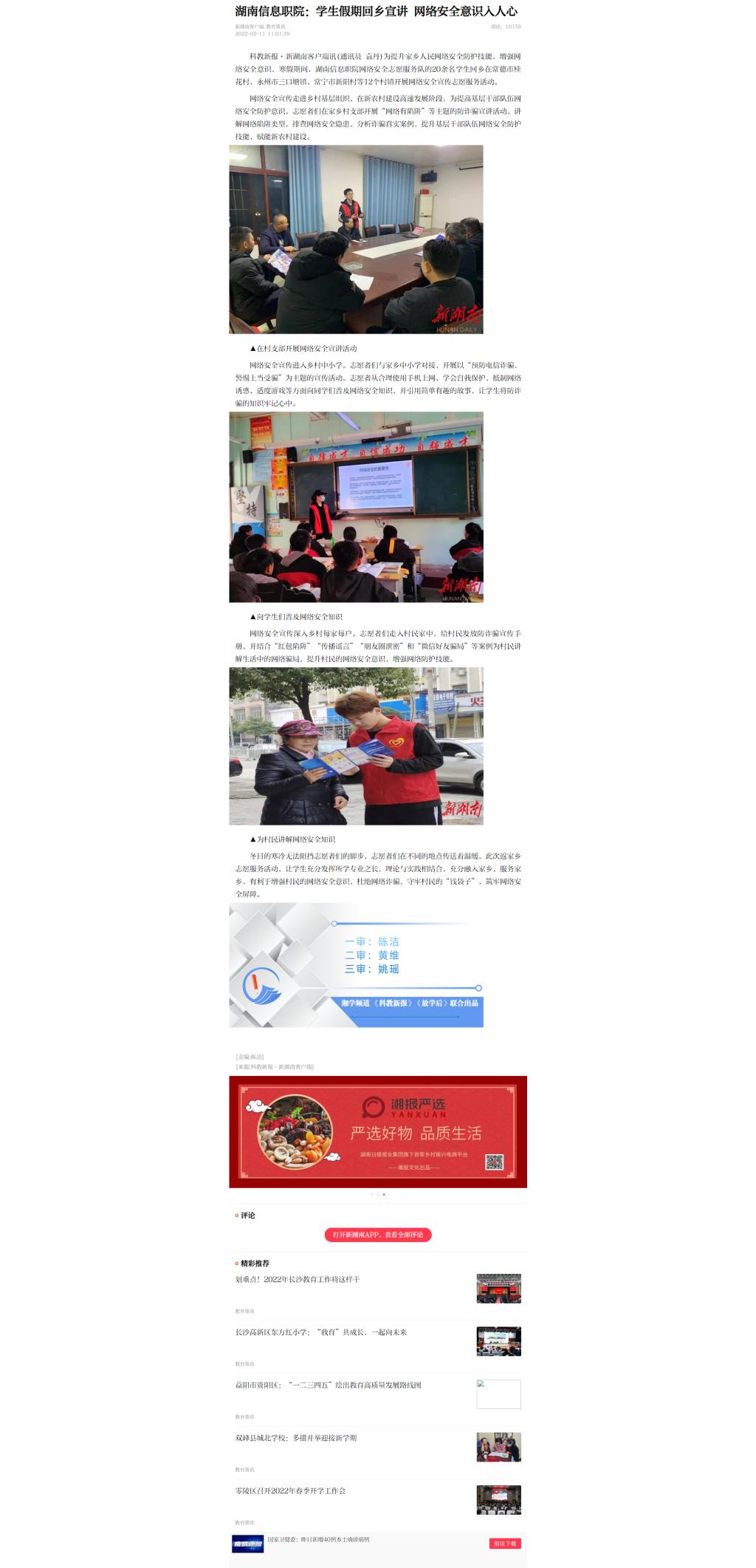 2月11日,新湖南发布《湖南信息职院:学生假期回乡宣讲 网络安全意识入人心》。