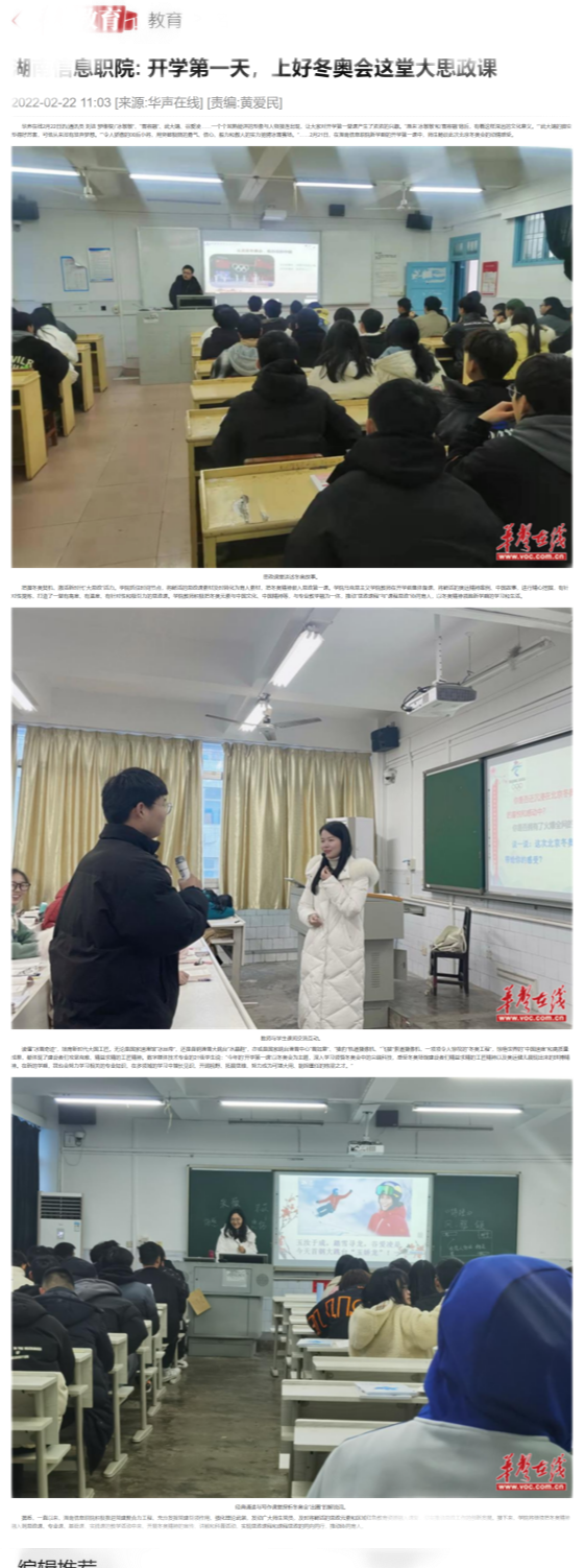 2月22日,华声在线发布《湖南信息职院: 开学第一天,上好冬奥会这堂大思政课》