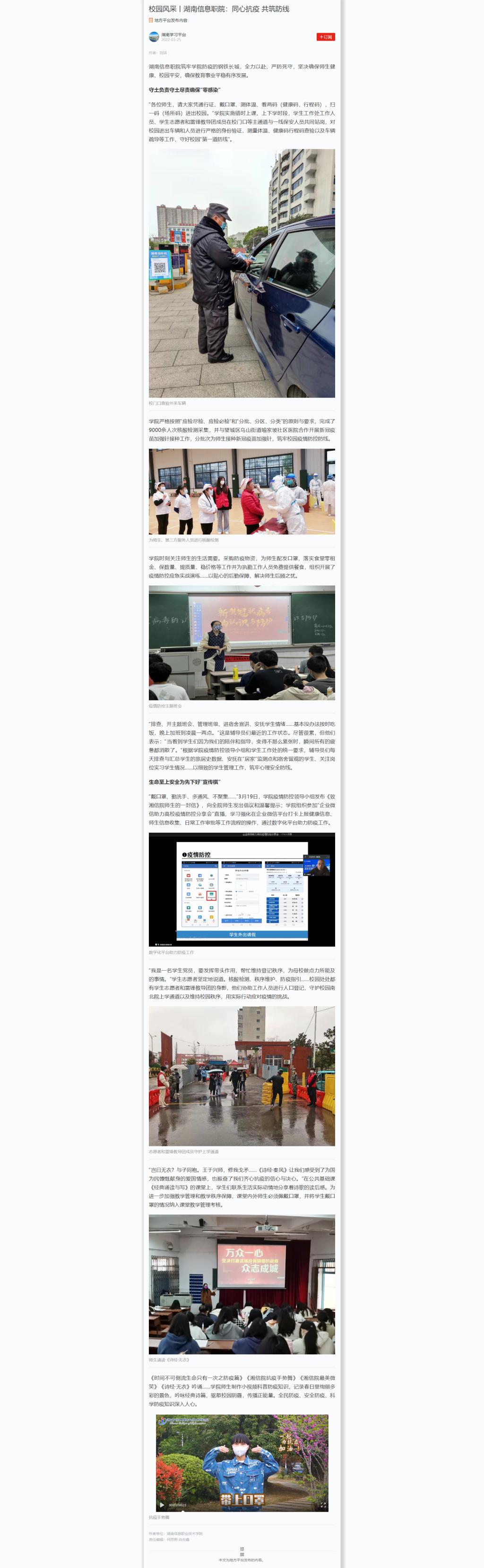 学习强国:校园风采丨湖南信息职院:同心抗疫 共筑防线