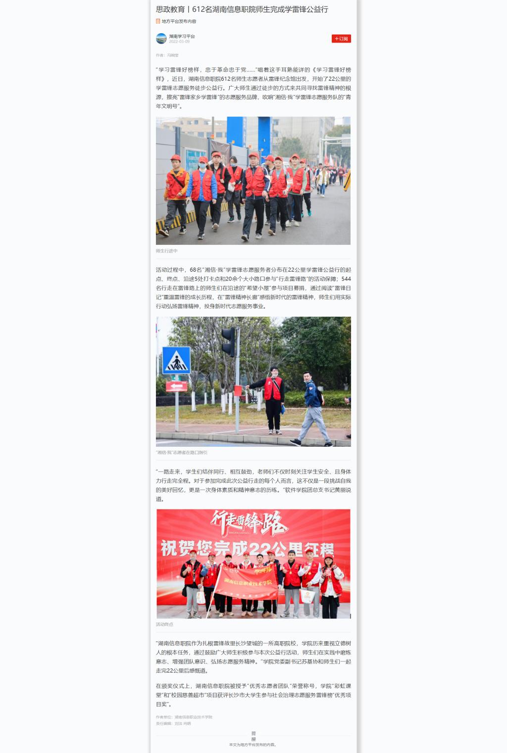 学习强国:思政教育丨612名湖南信息职院师生完成学雷锋公益行