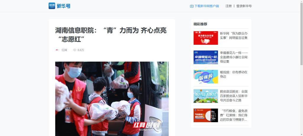 4月20日,新华网发布《湖南信息职院:“青”力而为 齐心点亮“志愿红”》