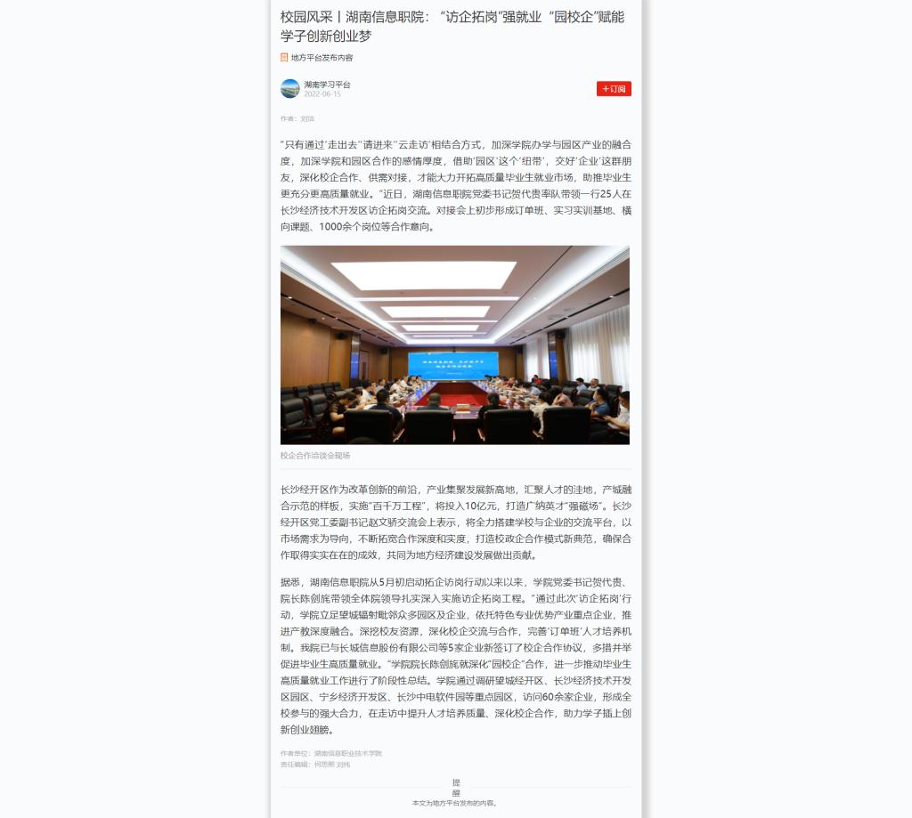 学习强国:校园风采丨湖南信息职院:“访企拓岗”强就业“园校企”赋能学子创新创业梦