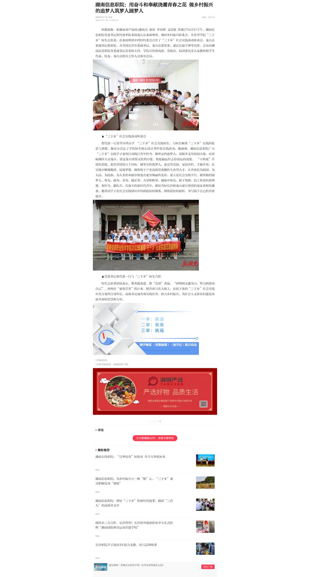 7月18日,新湖南发布《湖南信息职院:用奋斗和奉献浇灌青春之花 做乡村振兴的追梦人筑梦人圆梦人》