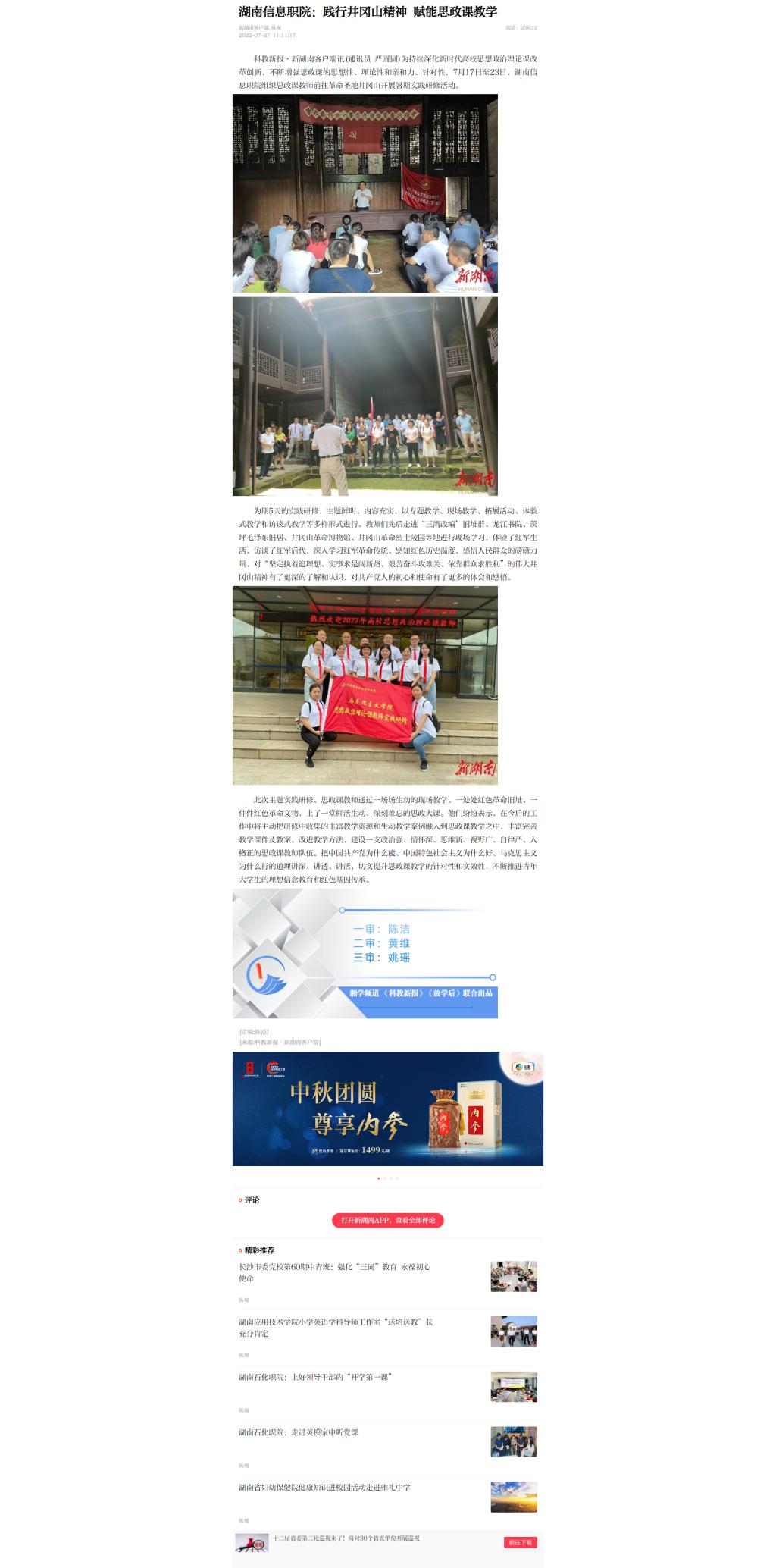 7月27日,新湖南发布《湖南信息职院:践行井冈山精神 赋能思政课教学》