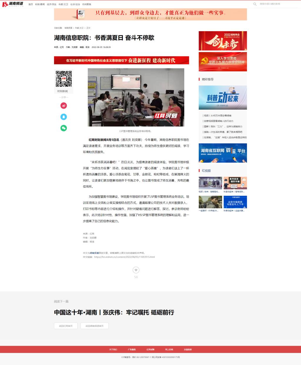 8月5日,红网时刻发布《湖南信息职院:书香满夏日 奋斗不停歇》