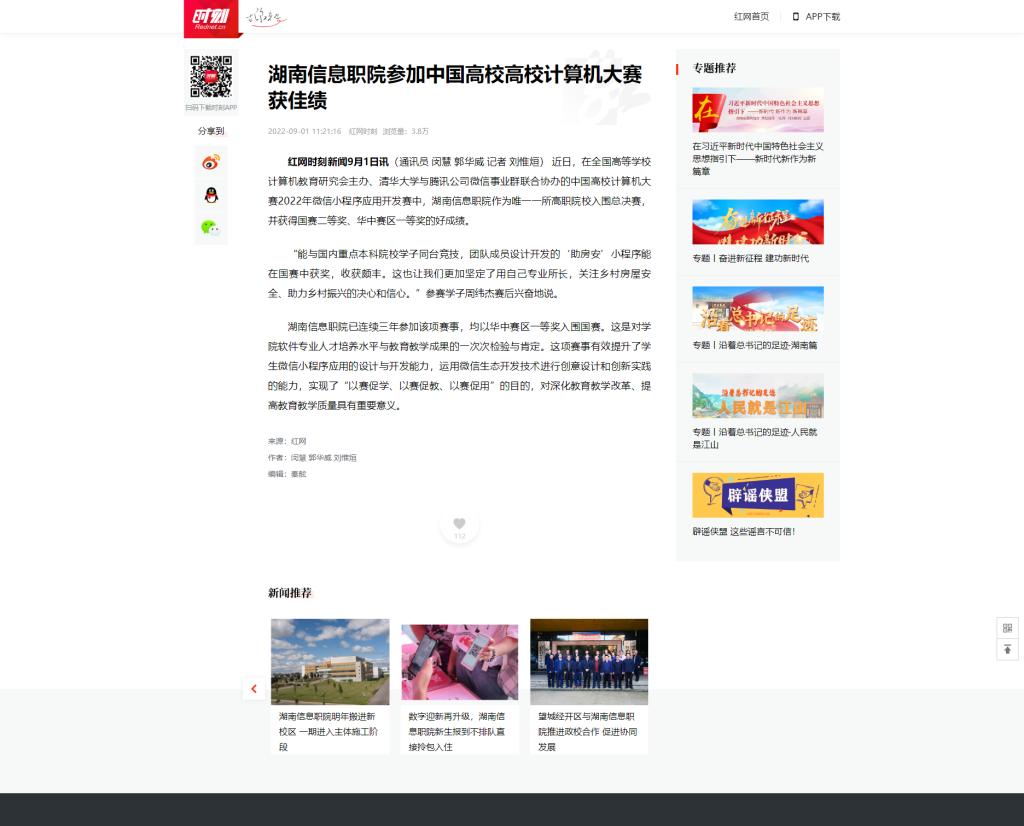 9月1日,红网时刻发布《湖南信息职院参加中国高校高校计算机大赛获佳绩》