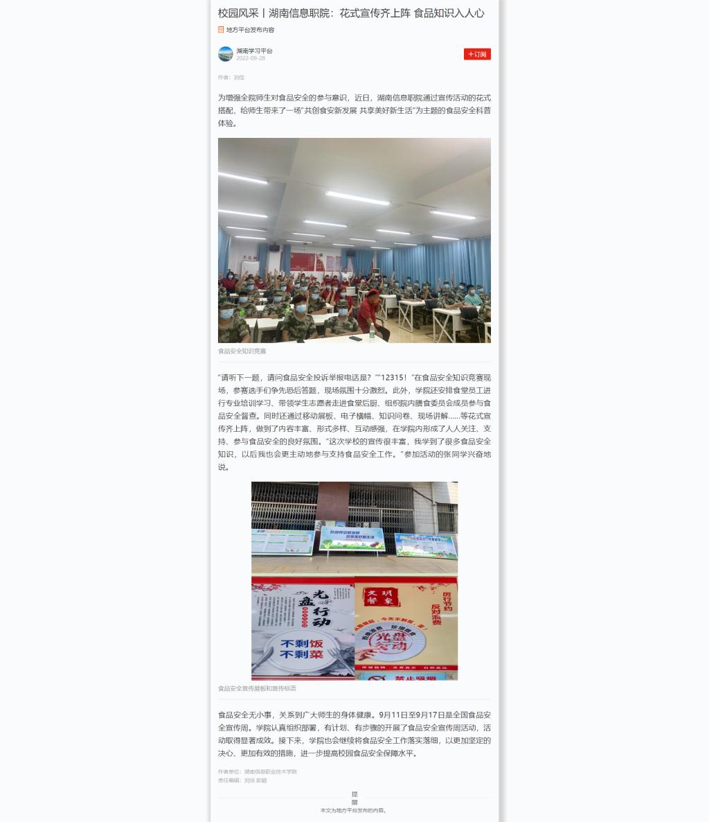 学习强国:校园风采丨湖南信息职院:花式宣传齐上阵 食品知识入人心