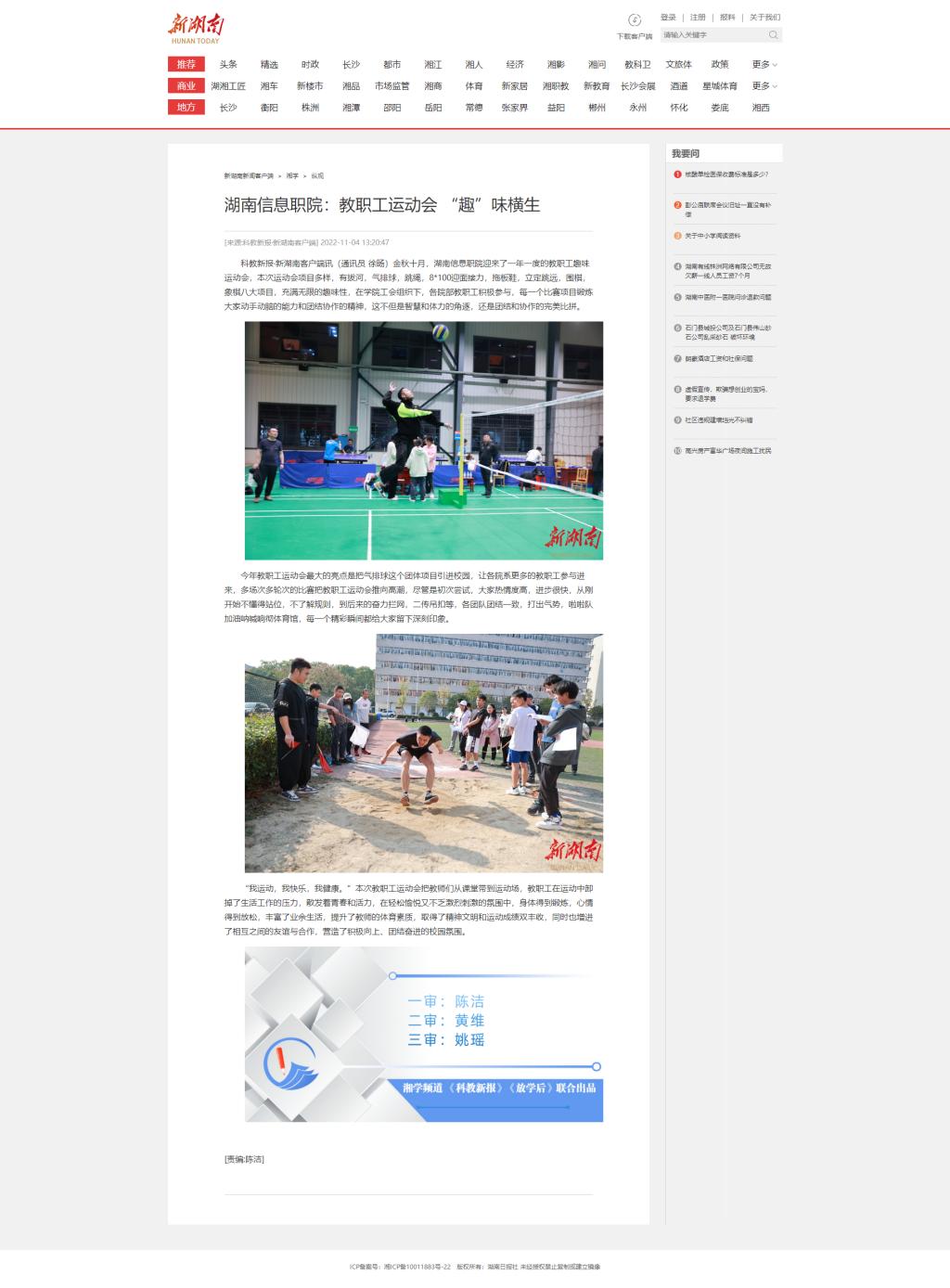 11月04日,新湖南发布《湖南信息职院:教职工运动会“趣”味横生》