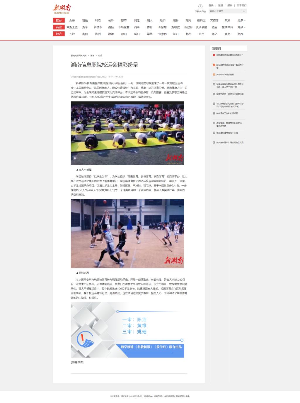 11月14日,新湖南发布《湖南信息职院校运会精彩纷呈》