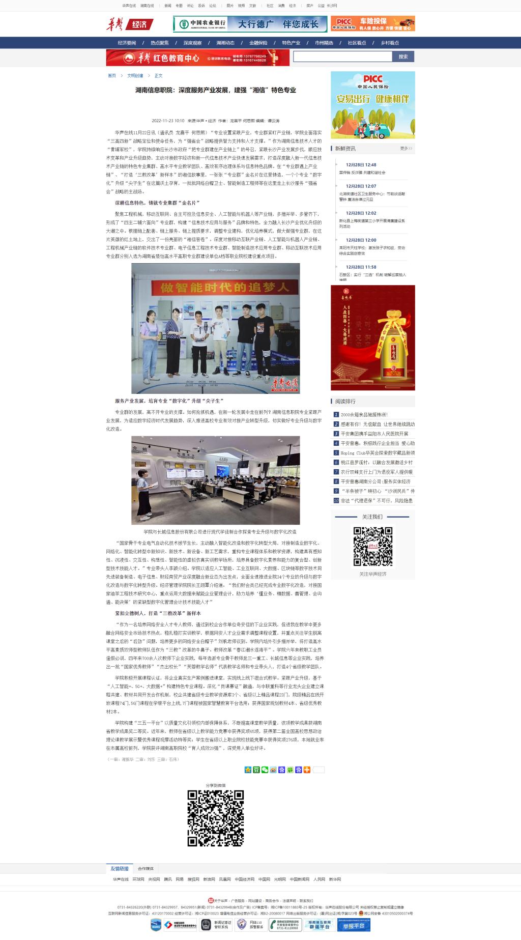 11月23日,华声在线发布《湖南信息职院:深度服务产业发展,建强“湘信”特色专业》