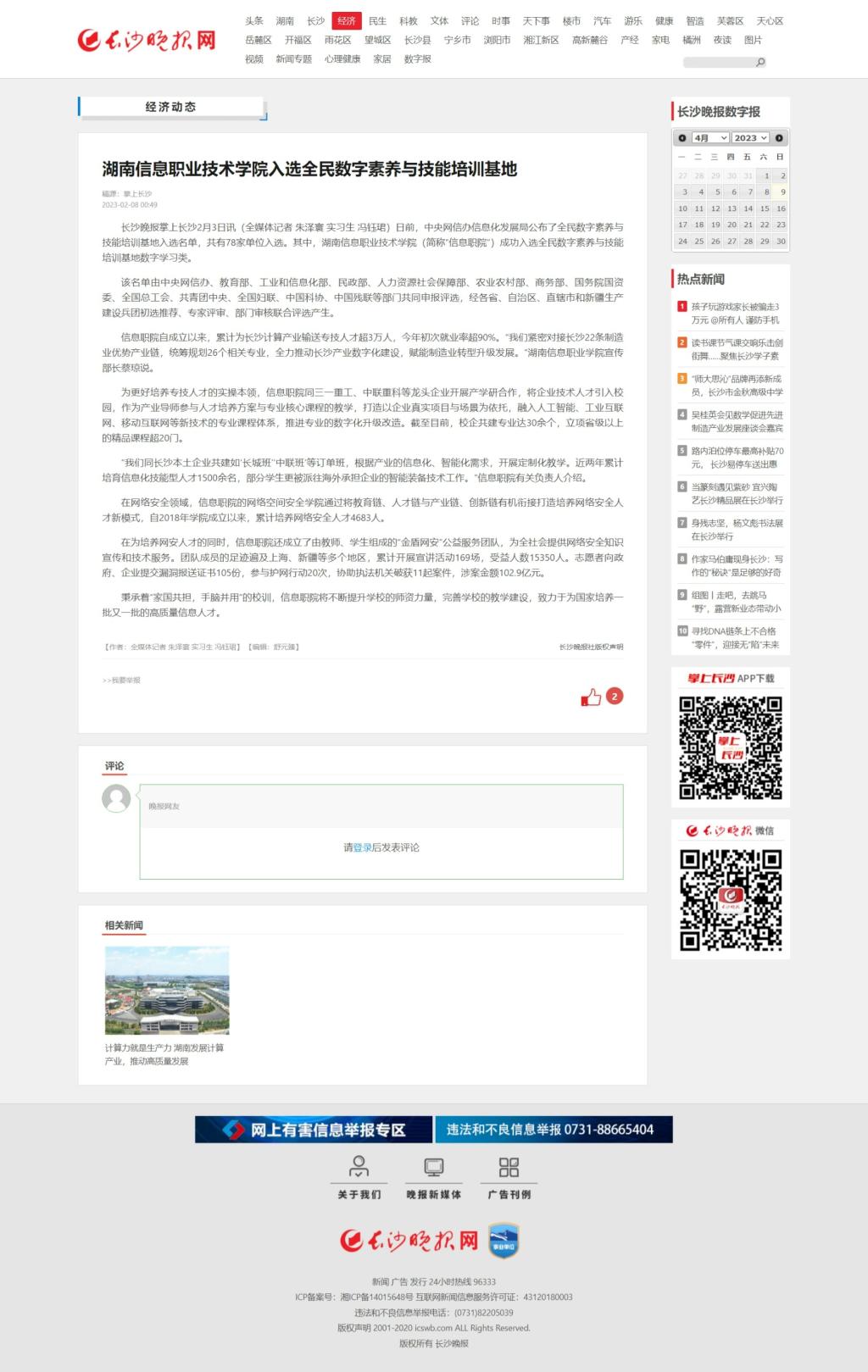 2月8日,长沙晚报网发布《beat365英国官方网站入选全民数字素养与技能培训基地》